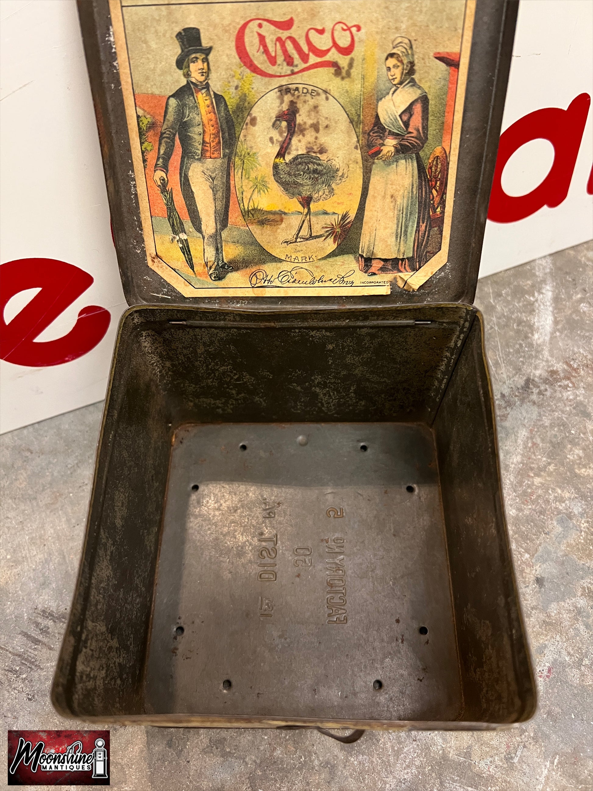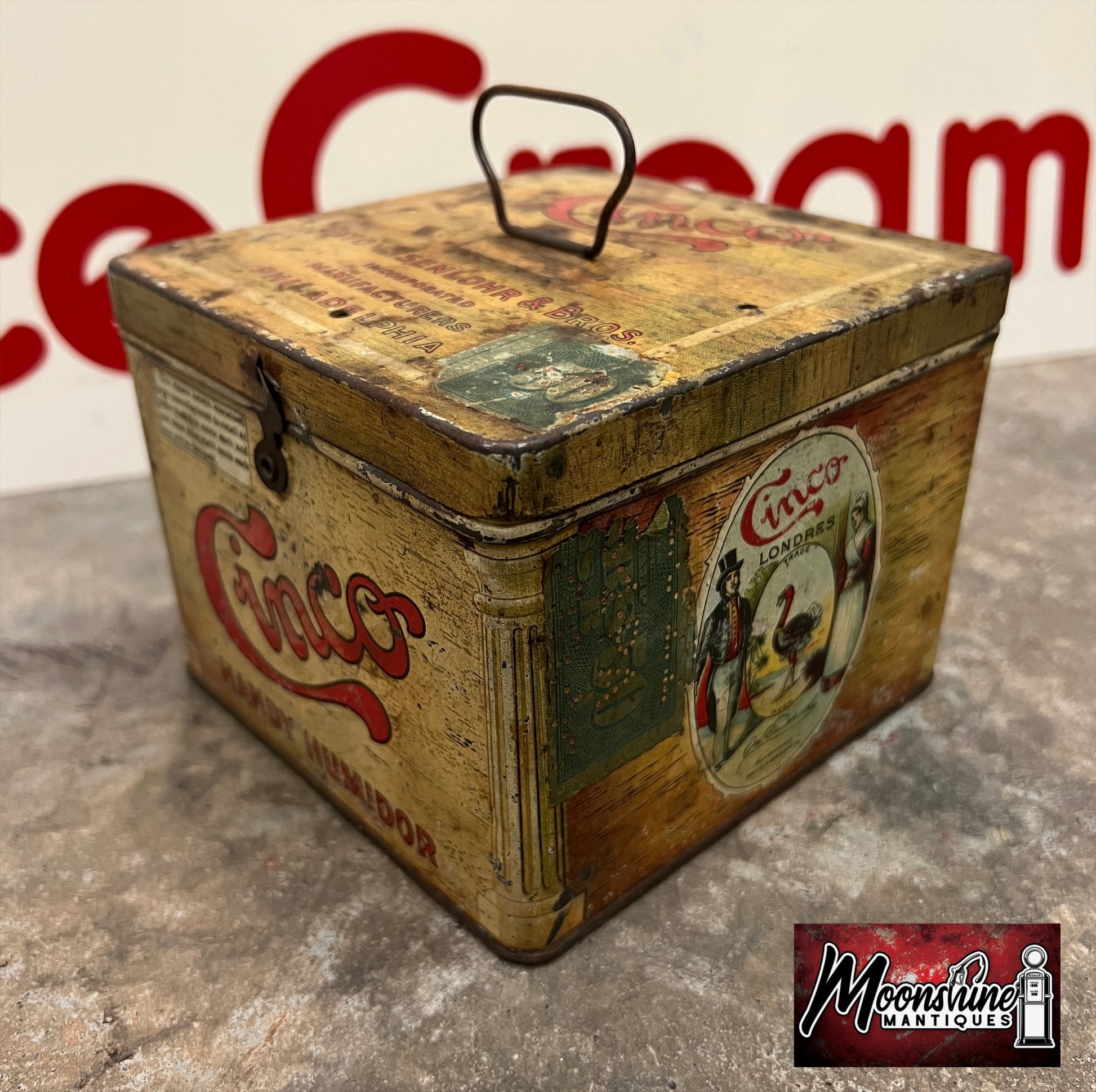 Antique CINCO CIGARS Handy Humidor Tin - Free Shipping!