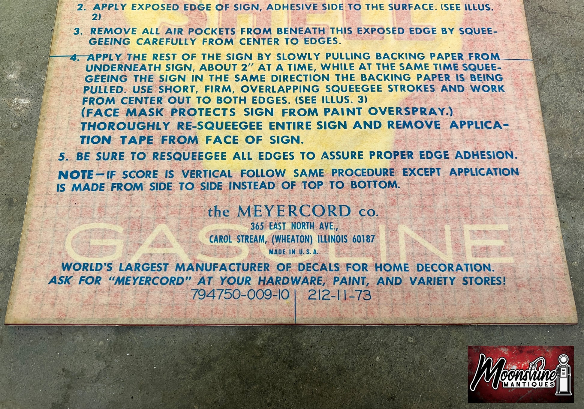 - Original gas pump decal.
