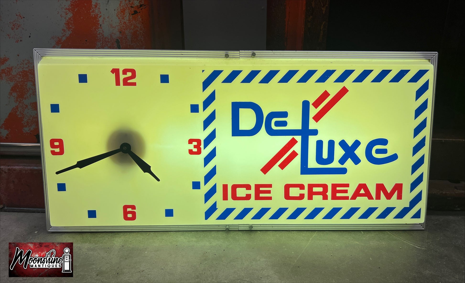 Vtg. DeLuxe Ice Cream Clock / Sign - Mooresville, NC - Free Shipping!